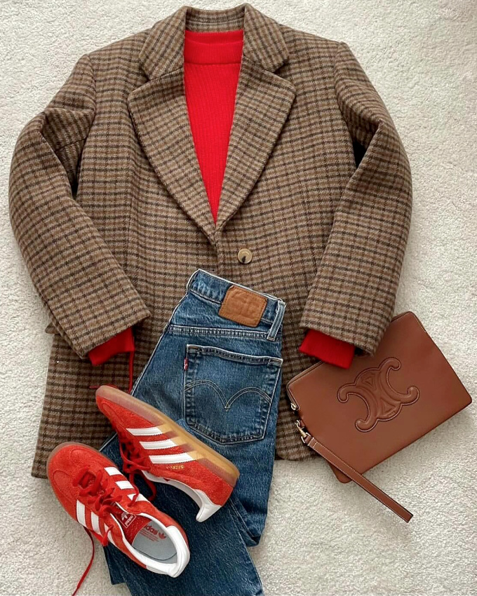 Apporter un twist aussi chaleureux que vivifiant au combo camel/marron/blanc (voir ici).