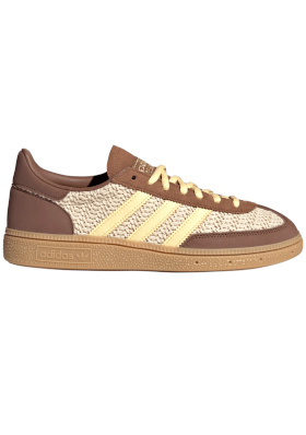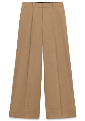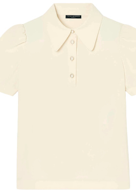 Le jaune pâle du polo permet de faire respirer le camaïeu de marrons constitué par le trio blouson/pantalon/baskets.