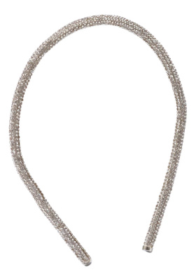 Le fin serre-tête bijouté permet de contraster avec le volume du blouson et avec la douceur du pull.
