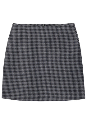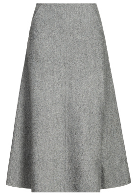 Le drap de laine presque sévère de la jupe est adouci par la maille moelleuse du pull.