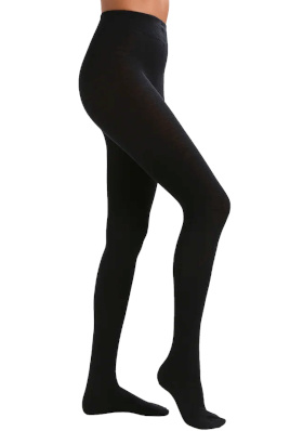 Les collants opaques (en continuité avec la teinte des bottines) permettent d'allonger la jambe visuellement.