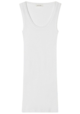 Le marcel blanc se glisse sous la robe-pull qui elle-même se glisse sur la jupe.