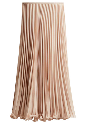 La jupe plissée ton sur ton, portée sous la robe, crée un jeu de superpositions fluides qui renforce la féminité du look.