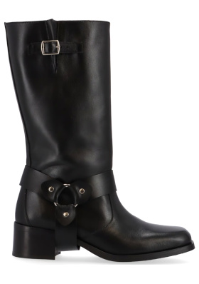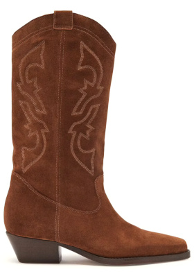 Les bottes ancrent la silhouette et contrastent avec la féminité de la jupe.