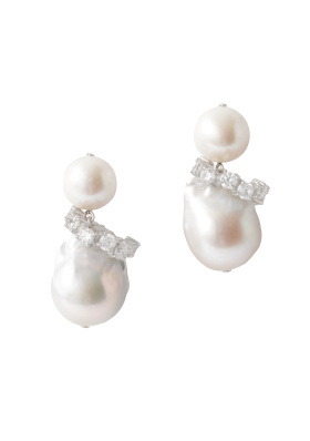 La féminité des boucles d'oreilles contraste avec l'ampleur masculine du blouson.