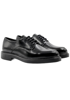 La légèreté du caraco est patinée par la robustesse des derbies.