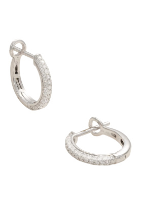 La finesse des créoles argentées crée un contrepoint subtil au volume masculin du blouson en cuir.
