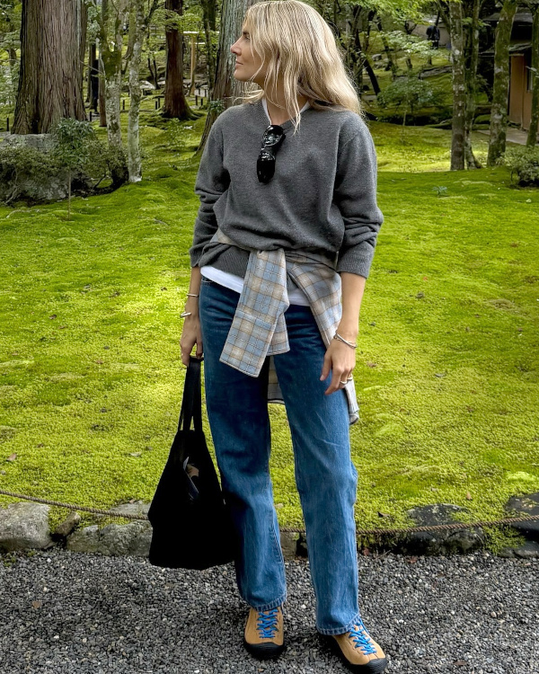 (à marier avec un manteau marron) à glisser sous une chemise à carreaux (à marier au duo pardessus camel/casquette de baseball)