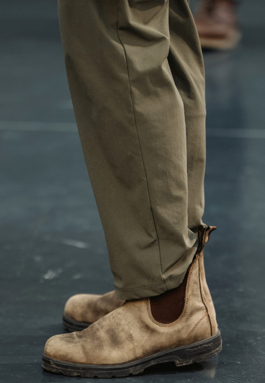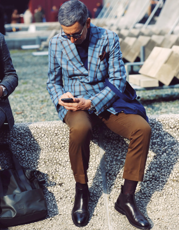 Laisser ses bas de pantalon s'accrocher négligemment sur l'arrière de ses chelsea boots (voir ici).