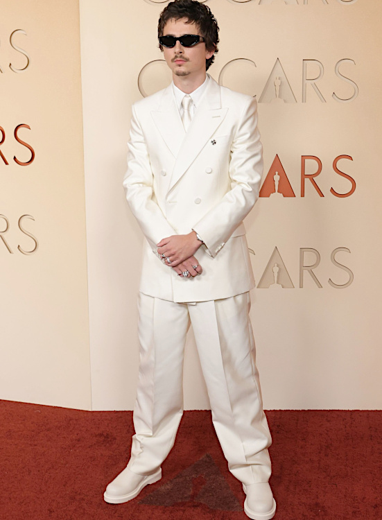Pourquoi la personne qui choisit les toilettes de Lena Mahfouf semble-t-elle toujours vouloir flirter avec une sensualité si appuyée qu'elle finit par frôler la vulgarité ? (Lena Mahfouf en Georges Hobeika) Une fois de plus, la coiffure affadit ici considérablement la tenue. Minimaliste, cette robe aurait gagné à être accompagnée d'une coiffure plus affirmée et d'un maquillage sobre mais relevé d'un trait de rouge à lèvres. Dommage… (Alana Haim en Louis Vuitton). Timothée Chalamet et Anna Wintour devraient songer à aller jouer ensemble au tennis (ou au ping-pong), tant ils semblent partager les mêmes goûts : lunettes de soleil à 19 heures, look improbable et assurance légèrement hautaine. Ces deux-là sont faits pour s'entendre… Le musée d'histoire naturelle de New York a signalé le vol d'un faisan empaillé. Le principal suspect aurait été aperçu sur le tapis rouge des Oscars 2026… (Demi Moore en Gucci) Si elles s'avèrent plus réussies que sur Anne Hathaway, les broderies florales sur fond noir n'en manquent pas moins de fraîcheur (Rose Byrne en Dior). Face à certains looks, une question s'impose : pourquoi ? (Chloé Zhao, Audrey Nuna, Renate Reinsve, Alysa Liu, Sarah Paulson, Emma Chamberlain, Devon Lee Carlson). Faire un clin d'oeil à l'univers du ballet, pourquoi pas - surtout lorsque celle qui porte la tenue est une danseuse étoile. Mais le traiter de façon aussi littérale manque franchement de finesse... (Misty Copeland en David Koma)