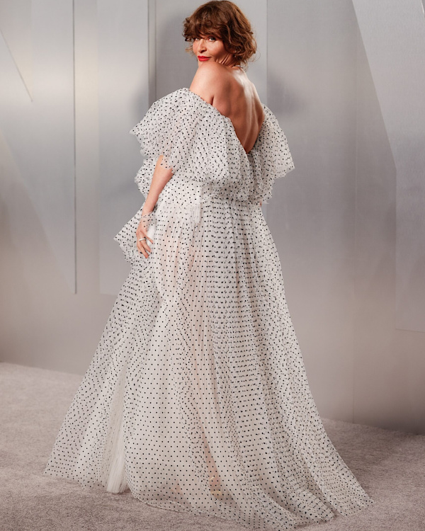Le jaune est une teinte qui ne pardonne rien. Il réclame un tissu présent (voire texturé), une coupe irréprochable et, surtout, supporte assez mal la compagnie d'une autre couleur. Des principes parfaitement assimilés par Felicity Jones en Prada, un peu moins par Sara Sampaio. Cette cérémonie des Oscars nous aura permis de découvrir un concept inattendu : le bavoir-piñata immaculé (Inga Ibsdotter Lilleaas en Loewe). Le jour où les stylistes comprendront que l'aisance d'un corps dans une tenue compte pour 50% de sa réussite, ils arrêteront de proposer à leurs clientes des looks comme celui d'Heidi Klum. Oui, le bleu cobalt est à la mode. Faut-il pour autant le porter façon courtisane du XIXe siècle ? La question mérite d'être posée… (Barbie Ferreira en Zac Posen) La robe de Ginnifer Goodwin a beau ne pas être parfaite (le drapé de dentelle reste un exercice périlleux), sa coupe courte équilibre si bien le glamour de l'ensemble que le look de l'actrice finit par emporter l'adhésion (Ginnifer Goodwin en Monse). Perfection… (Kaia Gerber en Givenchy). La tendance "pois" s'invite sur le tapis rouge, et c'est une réussite (Helena Christensen).