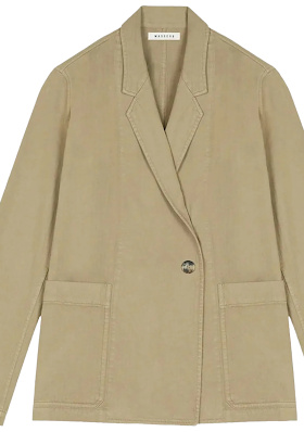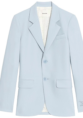 Porter le blazer ouvert ou en cape sur les épaules. Opter pour une coiffure dégageant bien le cou. Remplacer à l'envi le pantalon par un jean large blanc.