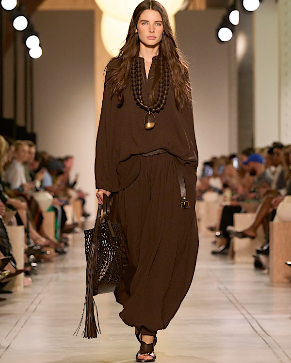 Avec son ADN boudoir à la Paul Poiret, le pantalon bouffant ultra-large gagnera à éviter les tops évoluant dans le même registre, sous peine de verser dans un premier degré "homewear" (Dior). Les volumes balloon XL fonctionnent particulièrement bien avec la toile denim, surtout lorsque le jean en question est associé à une veste cintrée, dessinant une ligne sablier à l'élégance très contemporaine (Dior). Bouffants et sophistiqués, les pantalons harem aiment être associés à des vestes ou blousons courts, capables d'offrir à la jambe un maximum de longueur. Attention toutefois aux détails trop imposants placés sur le devant (comme chez Dior), qui risquent de brouiller la lecture de la silhouette (Dior). Lorsqu'il se voit décliné dans des textures très "soir", le pantalon harem devient un candidat idéal au télescopage de styles. L'associer à des éléments graphiques très éloignés de son ADN - à l'image de cette chemise à carreaux sage - est ainsi une excellente idée (Dior). Les pantalons bouffants apprécient de voir leur volume dompté par un brin de structure : on oublie donc le large sur large… (Chloé, Altuzarra) À partir du moment où le top accompagnant le sarouel, le pantalon balloon ou toute autre variation du modèle barrel est étroit et légèrement court, il peut se permettre d'audacieux partis pris graphiques sans risquer de déséquilibrer la silhouette (Chloé). Attention : taillé dans une popeline de coton blanche un brin cassante, le pantalon bouffant peut vite perdre cette nonchalance qui fait tout son charme (Louis Vuitton). Taillé dans un tissu plus "working girl" que "Mille et Une Nuits", le pantalon sarouel drapé insuffle une touche d'exotisme maîtrisé aux tenues de ville (Michael Kors). Inséré dans un monochrome sable à l'esprit tailoring nonchalant, ce type de pantalon apportera juste ce qu'il faut de fraîcheur et de nouveauté à des looks d'ordinaire légèrement trop sages (Michael Kors). Le pantalon sarouel oversize à l'entrejambe descendue gagne à être porté avec des sandales à talons, qui permettent d'allonger la silhouette tout en contrebalançant son ampleur généreuse (Michael Kors, Altuzarra). Souligner la taille d'un pantalon balloon avec une fine ceinture permet de structurer subtilement la silhouette (Altuzarra). La version satinée des "harem pants" privilégiera des hauts mats et structurés (voir ici).