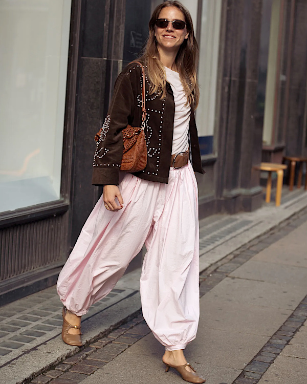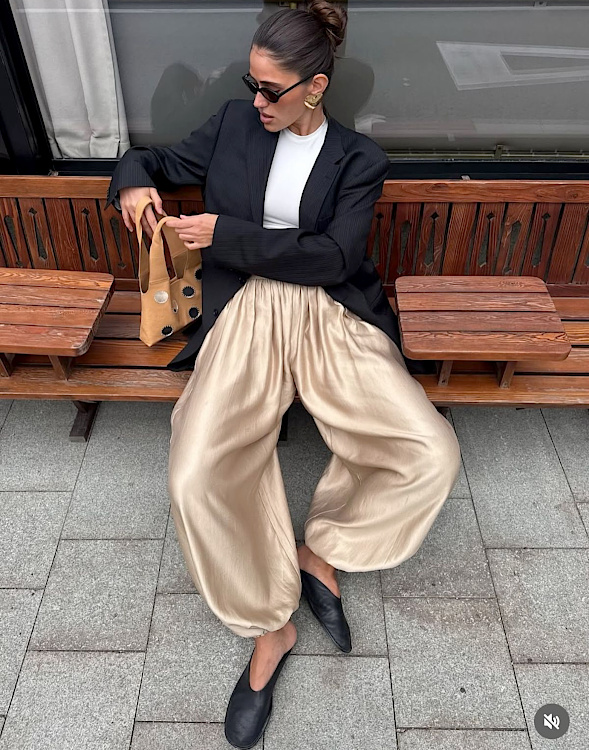 Pièce emblématique des années 2000, le pantalon bouffant s'emploie depuis quelques mois à redessiner les silhouettes en vogue. Sarouel, harem pants, balloon, barrel ou bubble pants : les noms varient, mais l'idée reste la même : un volume généreux aux hanches et/ou aux cuisses, resserré vers la cheville. Reste à savoir comment apprivoiser cette ampleur sans basculer dans le déguisement ni la caricature.